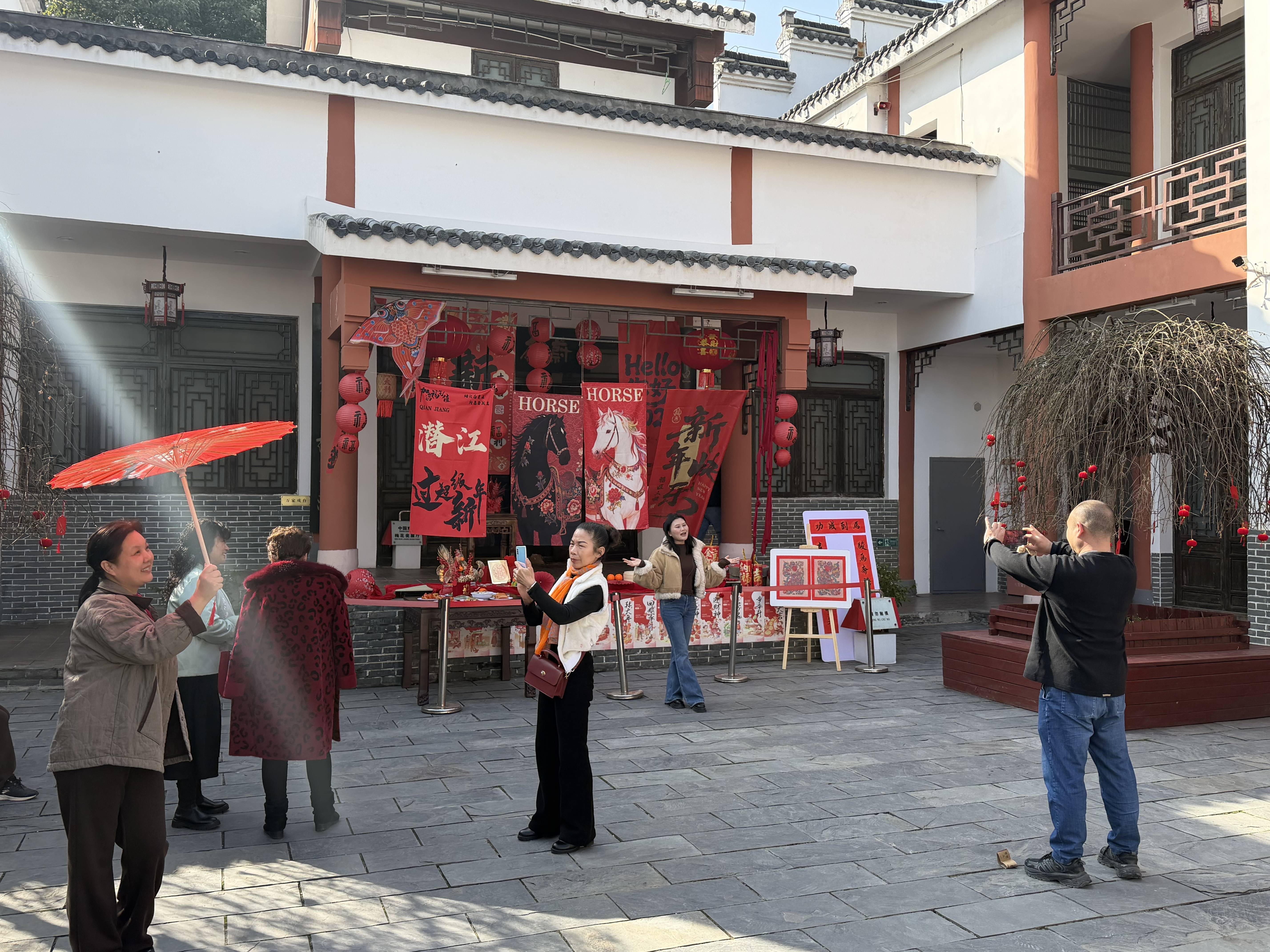 同日,马年生肖展在曹禺纪念馆正式开展,展期持续至3月3日。展览将马文化与曹禺文化深度融合,通过图文展示、实物陈列、多媒体演示等多种形式,系统展现马在中华传统文化中的重要地位,以及古往今来与马相关的文化典故、艺术作品、民俗风情。展厅内,一幅幅描绘骏马奔腾的书画作品、一件件造型精美的马年文创产品、一段段讲述马文化的视频,吸引了众多亲子家庭驻足观赏。“马象征勇往直前的奋进精神,与曹禺先生追求艺术的初心契合。”曹禺纪念馆工作人员介绍,展览特别设置了“马年寄语”互动区,邀请亲子家庭写下新春心愿,留存美好记忆。