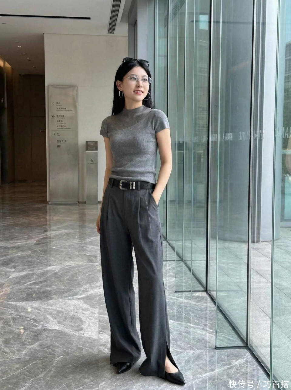 遮肉显瘦能力一绝,高个子大体型姐妹可以码住,但需要注意,为了保证灰色西裤的高级感,大家尽量选择直筒拖地长度的款,很火的萝卜裤型和西裤材质不匹配,即使匹配,对我们普通素人女孩驾驭起来也很有难度,别的不说,单就单品上身显腿短、打压身高这一点就无解。