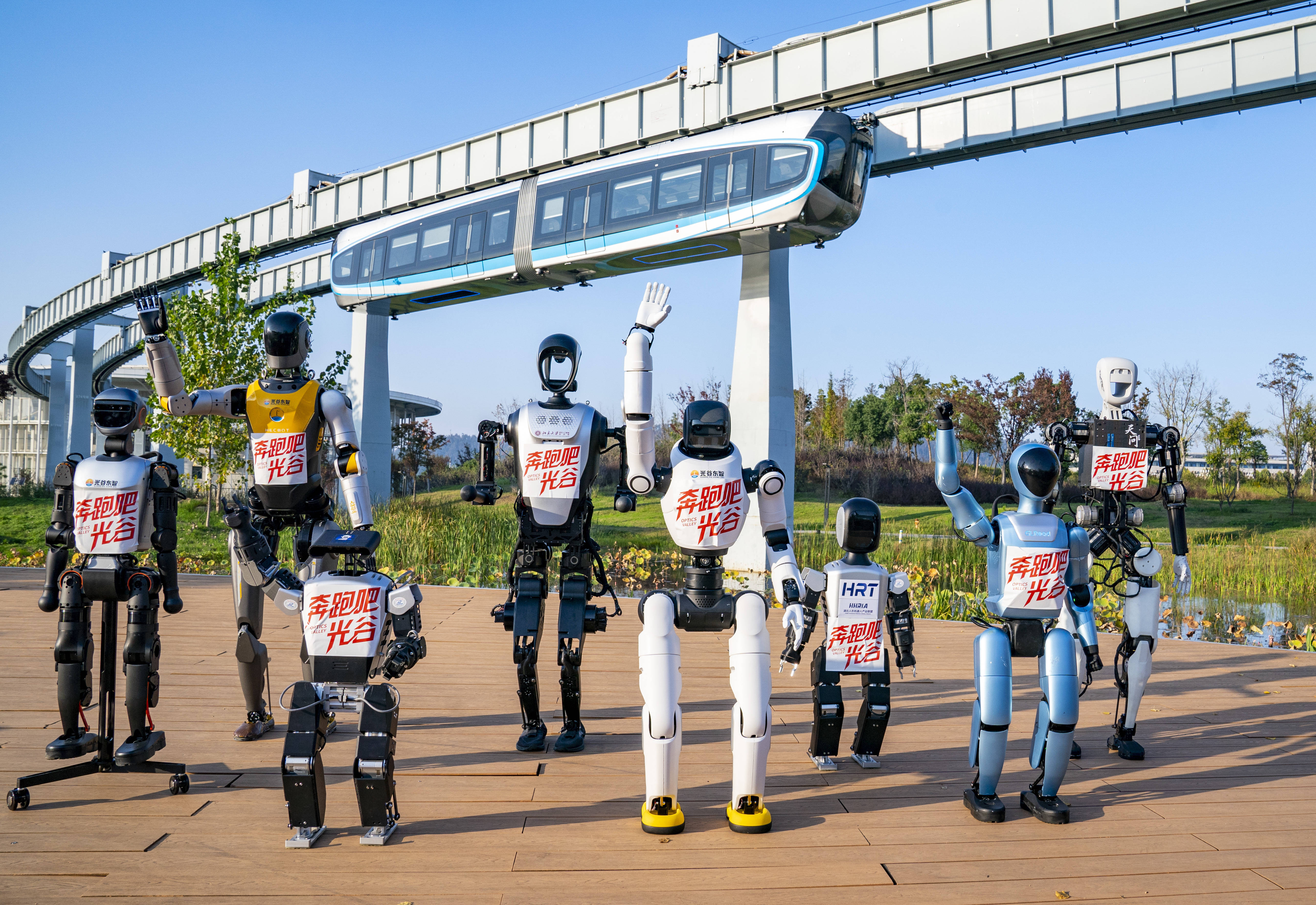 光谷人形机器人齐聚一堂股票配资公司网站,为光谷马拉松助威。(湖北日报全媒记者 魏铼 摄)湖北人形机器人中心于2025年6月揭牌,已部署上百台训练机器人,建成超市、餐厅、工厂等23个高仿真训练场,年采集数据能力超千万条,是全国规模最大、场景最丰富的人形机器人专业训练平台。