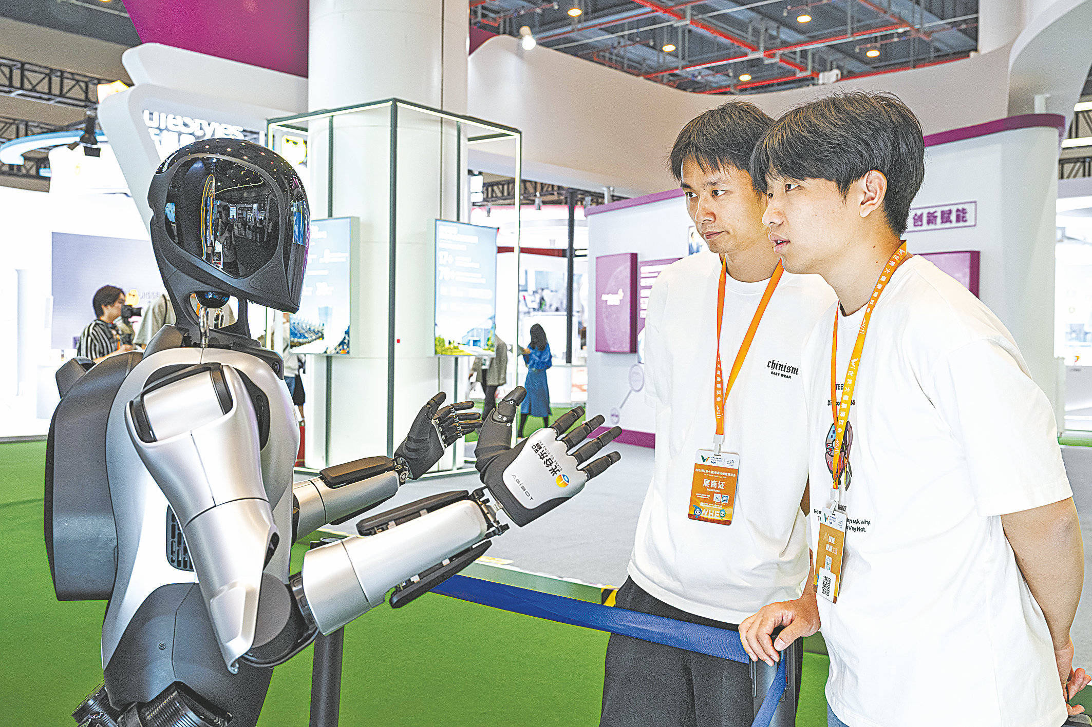 2025年(第七届)健博会上,光谷东智机器人与观众互动。(湖北日报全媒记者 任勇 摄)