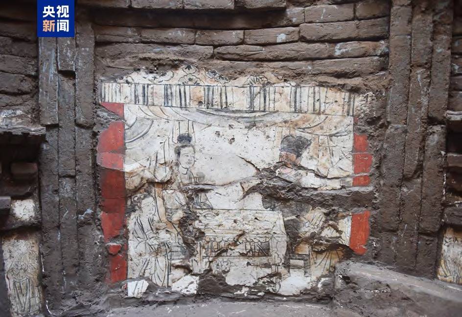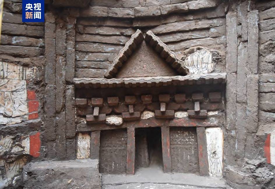r该墓葬为仿木构砖雕壁画墓,从南向北依次由墓道、甬道和墓室三部分组成。墓葬装饰采用砖雕和彩绘相结合的手法。