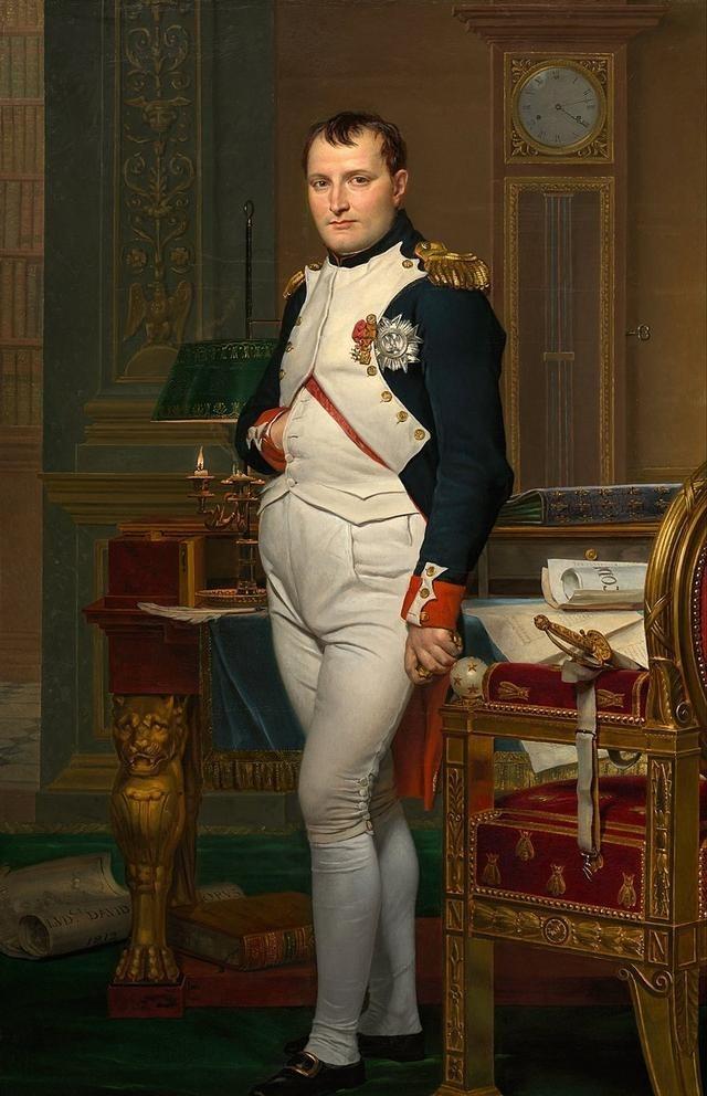 拿破仑的画像让这个姿势出名。1812年,苏格兰画家雅克-路易·大卫画了《拿破仑在杜伊勒里宫书房中》;画里,他右手伸进未扣的马甲,背景有书桌和时钟,显示他工作到凌晨。