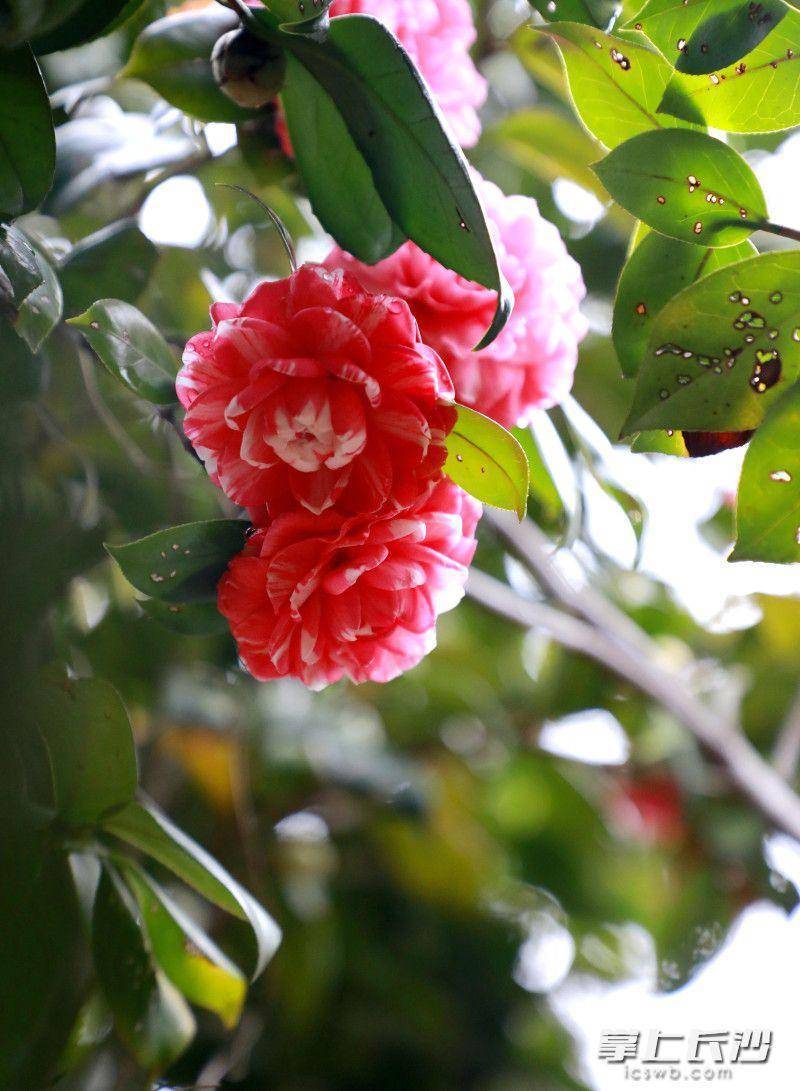樱花湖与竹园交界处的“岁寒三友”片区,汇集骨里红、绿萼、宫粉、朱砂等多个品种,花色丰富、层次分明,漫步其间如同置身香雪海,尽显冬日雅韵。与梅区相邻的茶花园内,名品荟萃,花开正盛。“十八学士”“金盘荔枝”“紫魁”等经典茶花品种次第开放,北门入口附近的“大花红山茶”尤为夺目,花朵直径达8至12厘米,花色艳丽、花型饱满,既是视觉盛宴,也为冬季传粉昆虫提供了重要蜜源,展现自然生态之美。
